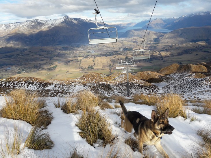Finally bought a split board! $1600nzd from small planet with bindings and skins. Went up Coronet Peak with friends Nat and Jono and my German Shepherd Kelcie and my bosses Jack Russell Elvis.